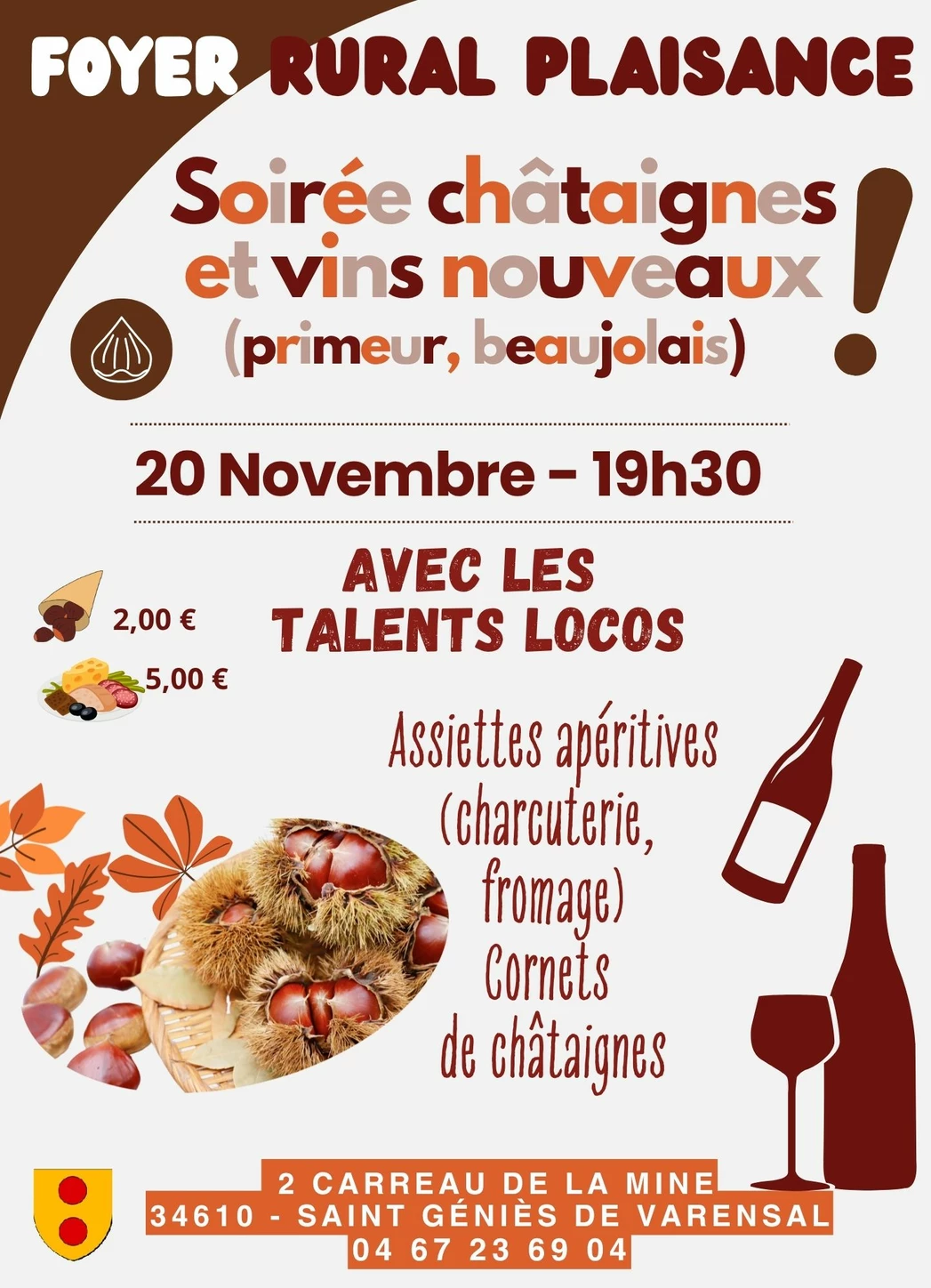 Festival "Harmonies d'Automne" les 15 et 16 novembre Samedi 15 novembre, Salle de la Tuilerie à Bédarieux : 19h : dégustation de vins "Crus…