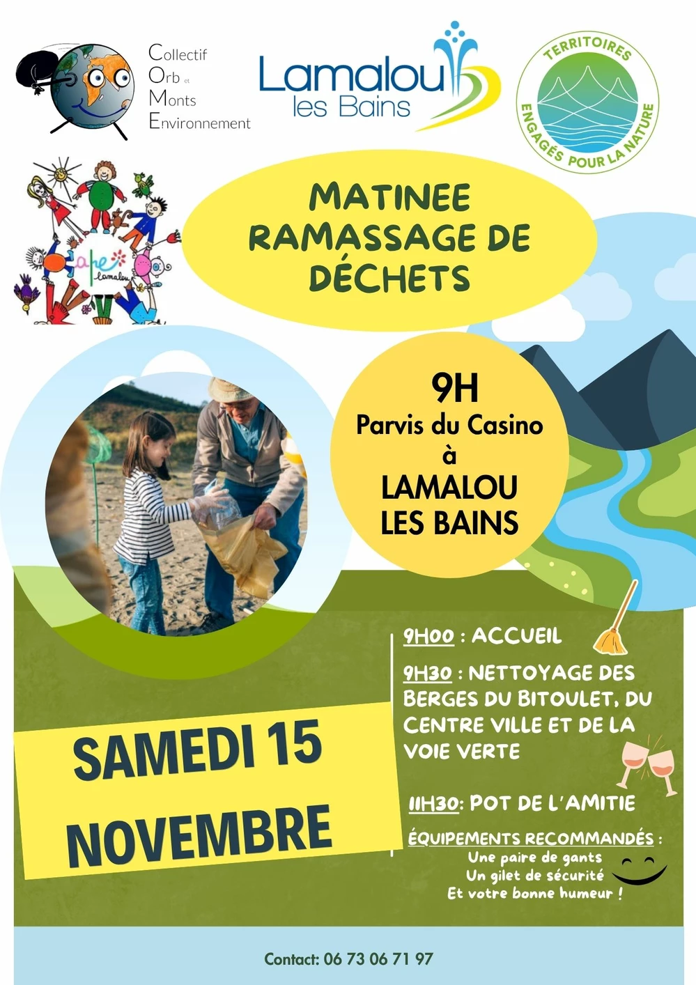 Matinée de ramassage de déchets à Lamalou-les-Bains ! Rejoignez-nous samedi 15 novembre dès 9h sur le parvis du Casino de…