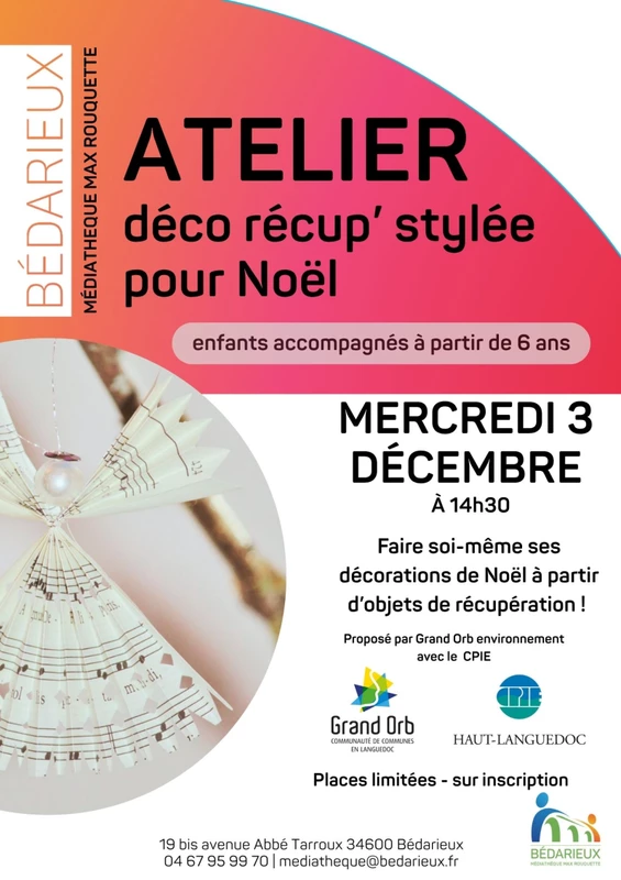 Mercredi 3 décembre à 14h30, les enfants accompagnés à partir de 6 ans ont rendez-vous à la médiathèque Max Rouquette pour fabriquer leurs…