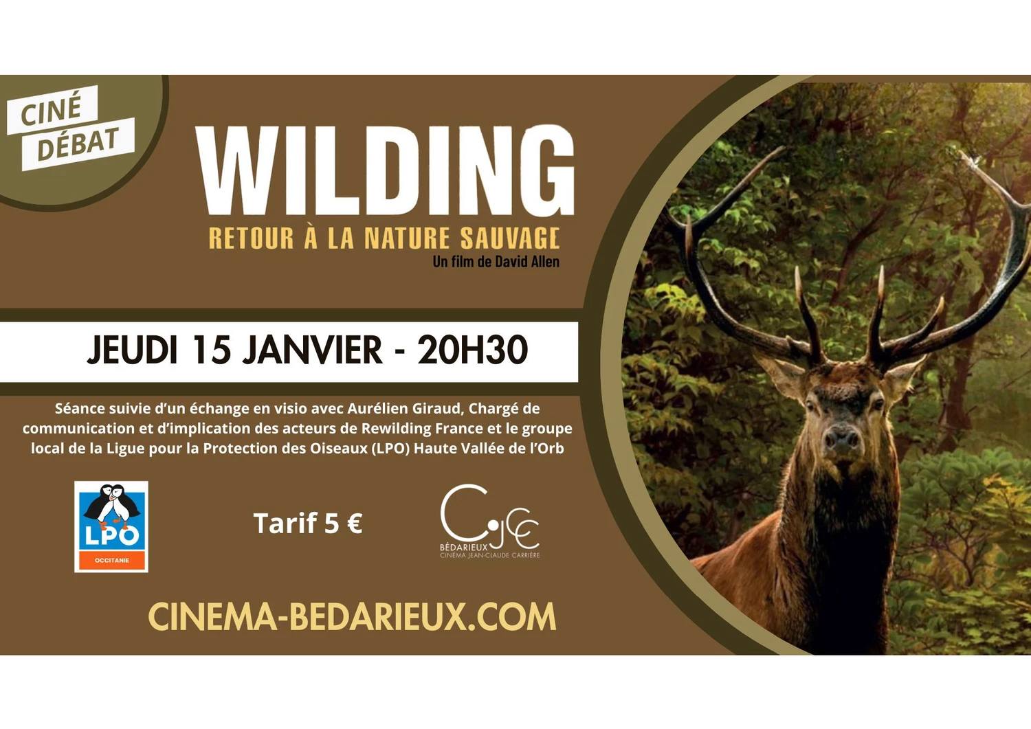 15 janvier : 20h30 au cinéma de Bédarieux, tarif 5€, ciné-débat : « Wilding, Retour à la nature sauvage » Séance…