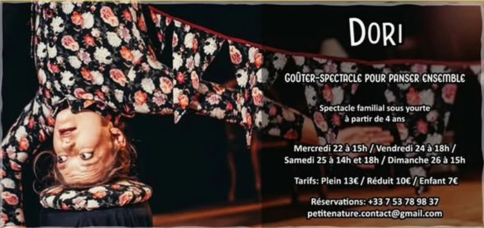 Le Cirque des Petites Natures s’invite à Lunas du 17 au 26 avril !Pendant 2 semaines, la Base de loisirs de la Prade va accueillir le Cirque des Petites Natures, avec un grand chapiteau pour son spectacle "LE BRUIT", mélangeant cirque et musique live, et une yourte pour le goûter spectacle "DORI".Avec le coin buvette et restauration tenu par l'équipe d'Etc & Terra, la convivialité, la surprise et le régal de tous vos sens seront au rendez-vous !Spectacle Le BruitVendredi 17, samedi 18, vendredi 24 et samedi 25 à 20h (le 25, suivi d'un concert de Saf Feh à 22h)Dimanche 19 et dimanche 26 à 17hJeudi 23 à 14h - séance spéciale jeune public (à partir de 3 ans - durée 50 mn) résa : asso.etcetterra@gmail.comFaire corps pluriels.Faire de corps – de cordes, de son, de toile, de quelques poils et de bouts de ficelles – un cœur battant.Faire avec nos contraires. Mêler les atomes en un bal fou.Les pressuriser et assister au feu d’artifice de leur délivrance : Sonore, bruyant, heureux, généreux, tendre et intempestif.LE BRUIT est une célébration. Un doux mélange de rituels et d’histoires à (se) raconter.Vos oreilles n’en croiront pas leurs yeux...Tarif plein 16€ - Tarif réduit 12€ - Enfants de 5 à 12 ans 8 € - Gratuit pour les moins de 5 ans.Durée 1h30 - Conseillé à partir de 6 ansRéservations : lebruit.billetterie@gmail.com | +33 7 53 78 98 37Goûter-spectacle DoriMercredi 22 à 15hVendredi 24 à 18hSamedi 25 à 14h et 18hDimanche 26 à 15hDori nous invite à sa fête d'anniversaire.Elle s'emberlificote, perd l'équilibre et dégringole du haut d'elle-même. On rit, on chante et on se relève ensemble pour célébrer la vie.Un projet de sensibilisation au consentement pour un public intergénérationnel.Tarif plein 13€ - Tarif réduit 10€ - Tarif enfant 7€Durée 50 min - Dès 4 ansRéservations : petitenature.contact@gmail.com | +33 7 53 78 98 37