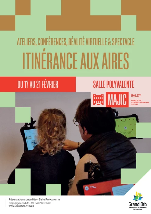 Dans le cadre de son itinérance, l’équipe MAJIC s’installe chaque mois pendant une semaine dans une commune de Grand Orb. C’est aux Aires qu’elle posera ses valises du 17 au 21 février, à la salle polyvalente, pour aller à la rencontre des scolaires et du grand public sur le thème du portrait.