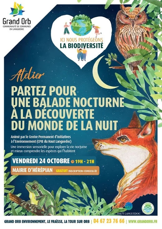 Atelier Partez pour une balade nocturne à la découverte du monde de la nuit organisé par Grand Orb Environnement. L'atelier sera animé par le CPIE du Haut-Languedoc.