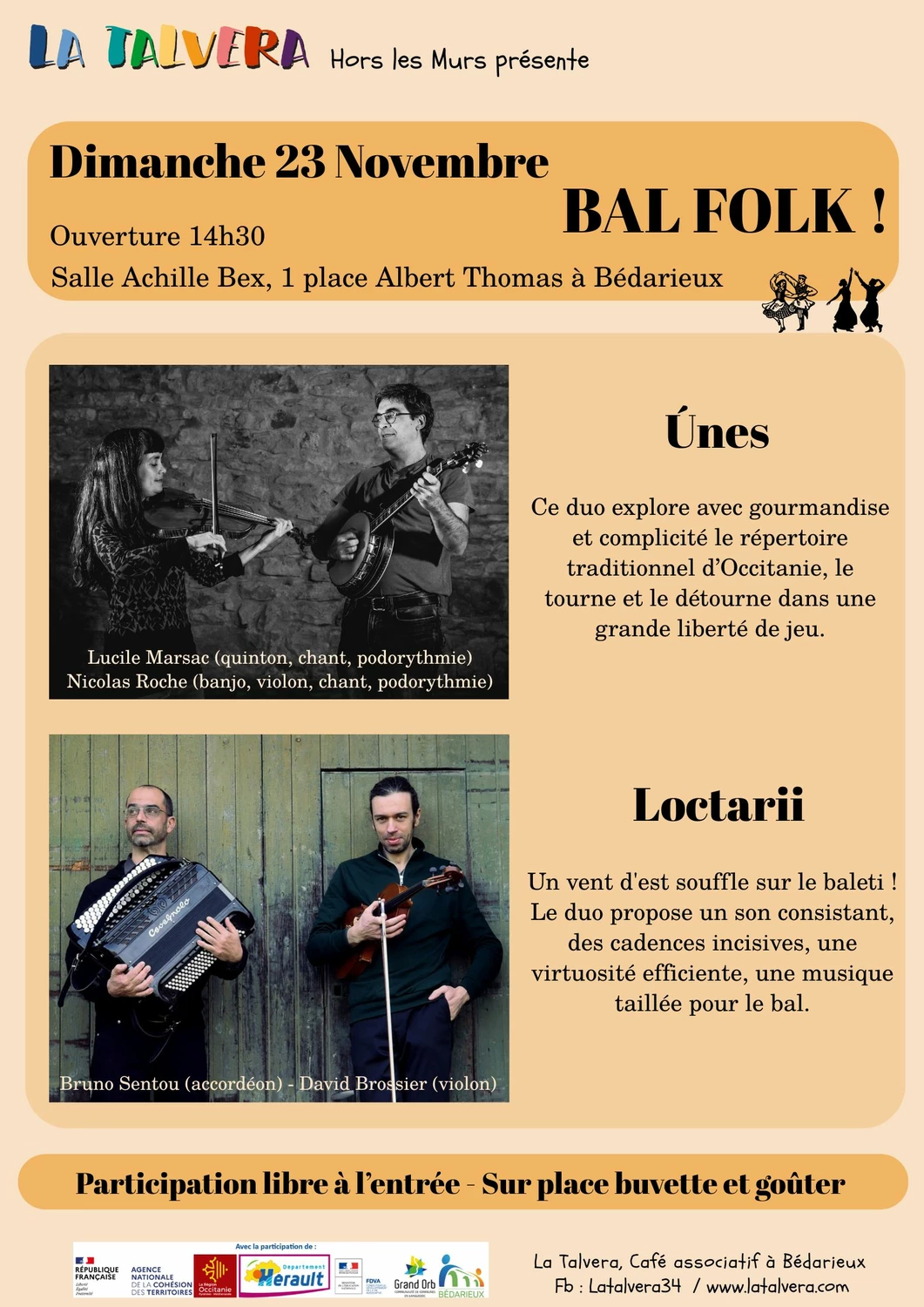 Lieu : salle Achille BEX, 1 place Albert Thomas à Bédarieux