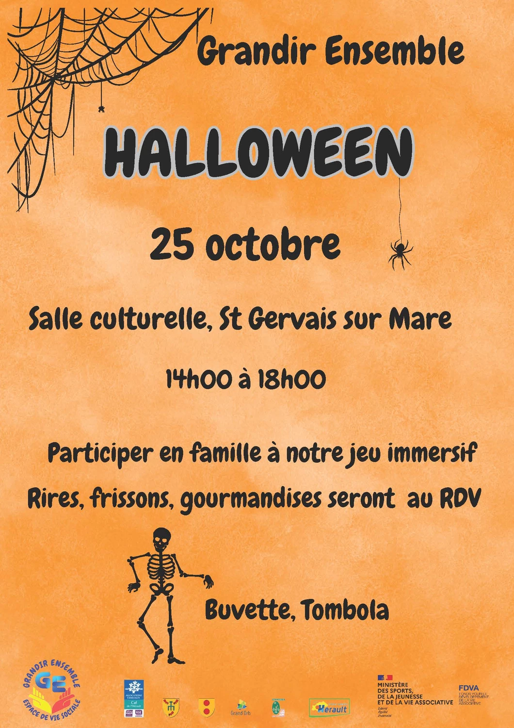 Rendez-vous samedi 25 octobre à la salle culturelle de St Gervais-sur-Mare pour fêter Halloween avec l'espace de vie sociale Grandir Ensemble.