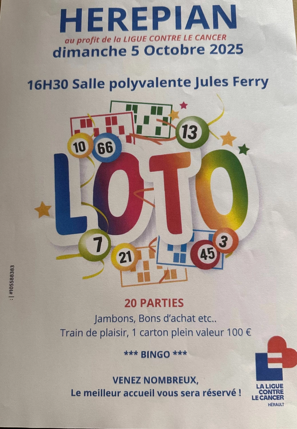 Loto organisé à l'Espace Jules Ferry au profit de la Ligue contre le cancer.