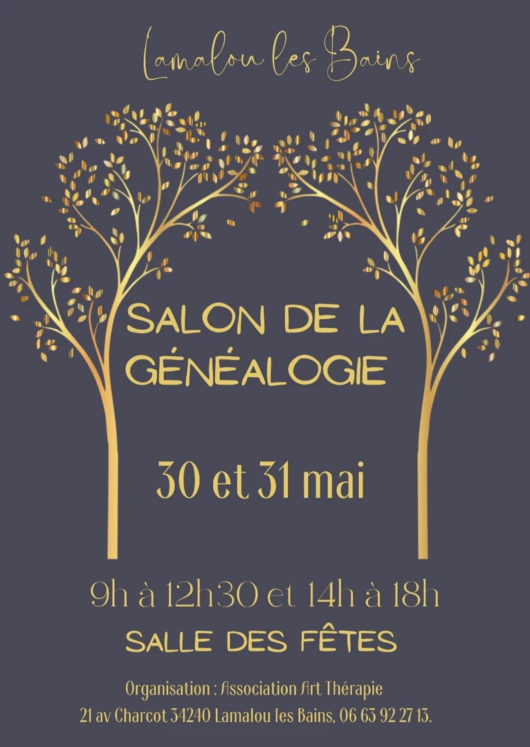 Salon de la généalogie tout le week-end de 9h à 12h30 et de 14h à 18h à la salle des fêtes.