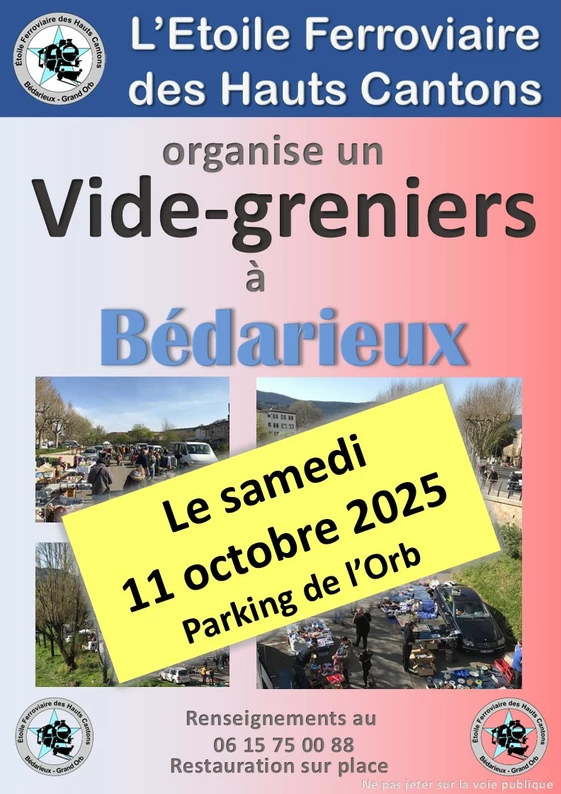 L'Etoile Ferroviaire des Hauts Cantons organise un vide-grenier samedi 11 octobre sur le parking de l'Orb.