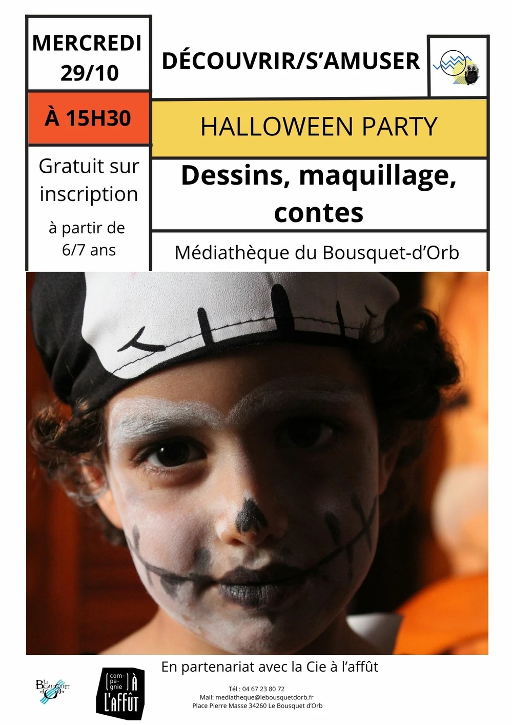 RDV mercredi 29 octobre à 15h30 à la médiathèque du Bousquet d’Orb pour un après-midi spécial halloween. Au programme : contes effrayants, maquillage et dessins de créatures monstrueuses !!