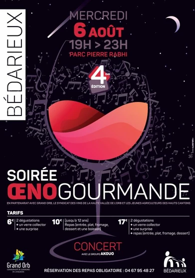 Soirée organisée par la ville de Bédarieux en partenariat avec Grand Orb, le syndicat des vins de la Haute Vallée de l’Orb et les Jeunes Agriculteurs des Hauts Cantons.