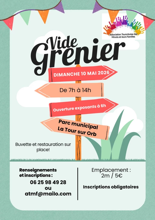 Vide-grenier organisé par l’ATMF dimanche 10 mai 2026 de 7h à 14h.