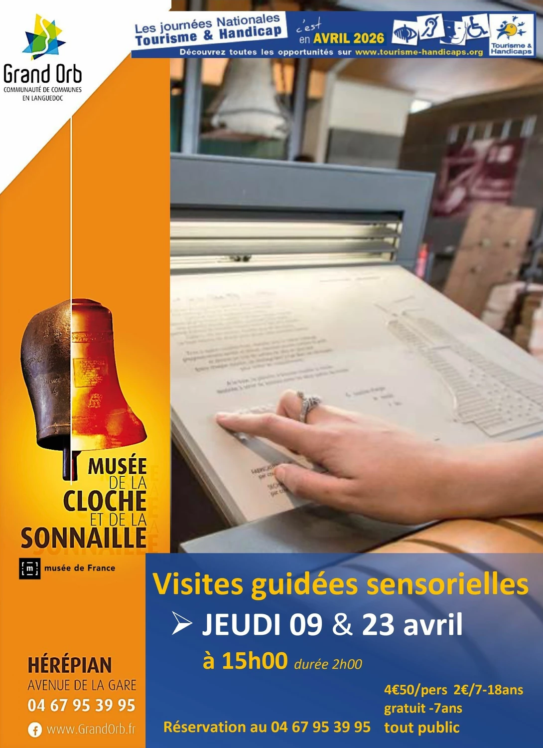 Les jeudis 9 et 23 avril, à l'occasion des Journées Nationales Tourisme et Handicap, le Musée de la Cloche et de la Sonnaille propose deux visites guidées sensorielles et interactives spécialement conçues pour une découverte immersive et inclusive.