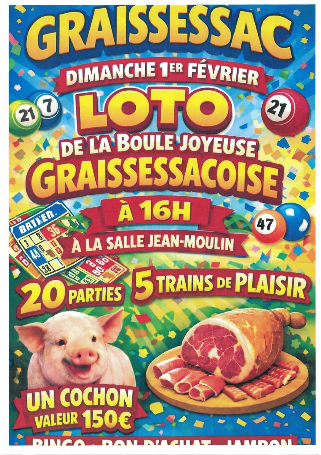 Loto de la Boule Joyeuse Graissessacoise organisé à 16h à la salle Jean Moulin.